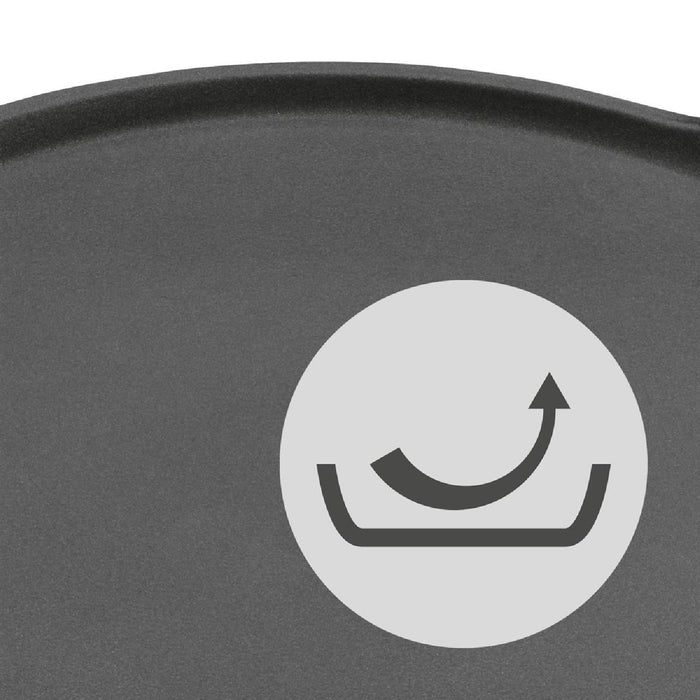 Die Pfanne kann auf allen gängigen Herdarten verwendet werden: Induktionsherd, Gasherd, Elektroherd, Glaskeramikherd. Einfaches Wenden und Herausnehmen des Teigs durch extraflachen Rand