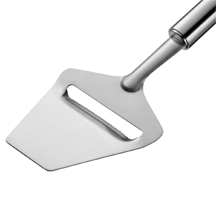 Mit dem WMF Käsehobel Edelstahl können Sie mit sanftem, gleichmäßigem Druck feine Scheibchen aus Hart- und Schnittkäse hobeln