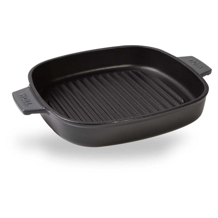 Woll, Iron, Steakpfanne mit Rillen, Carbon Grey 24 x 24 cm, 4.5 cm hoch Inkl. Steakpresse und Silikongriffe