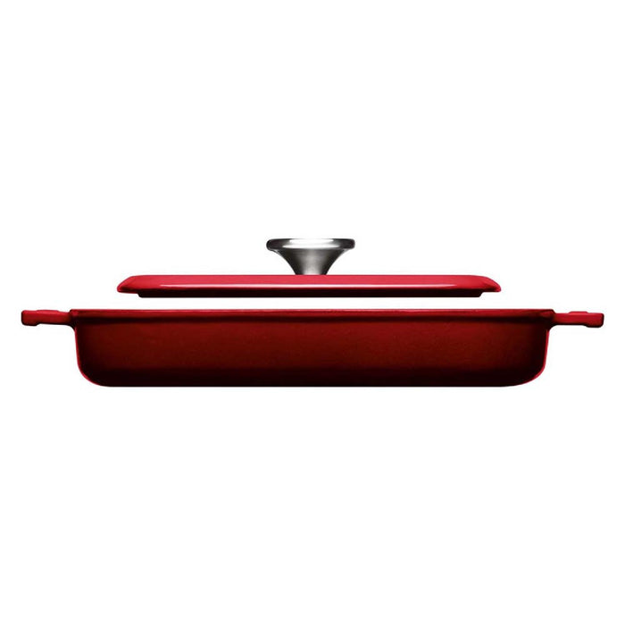 Woll, Iron, Steakpfanne mit Rillen, Chili Red 24 x 24 cm, 4.5 cm hoch Inkl. Steakpresse und Silikongriffe