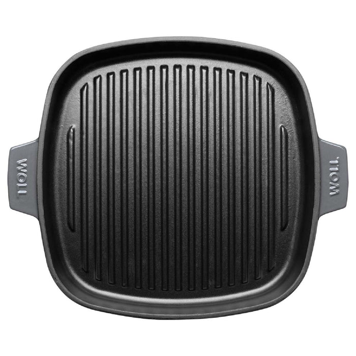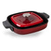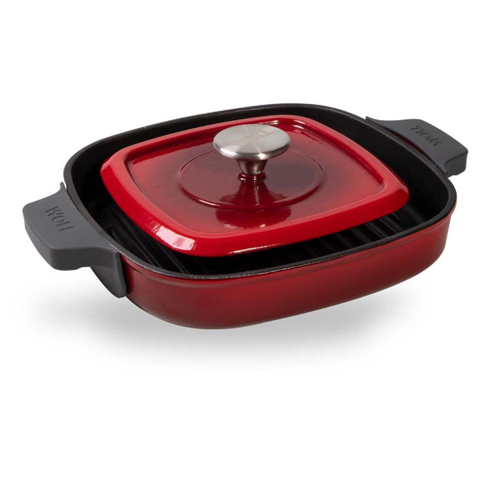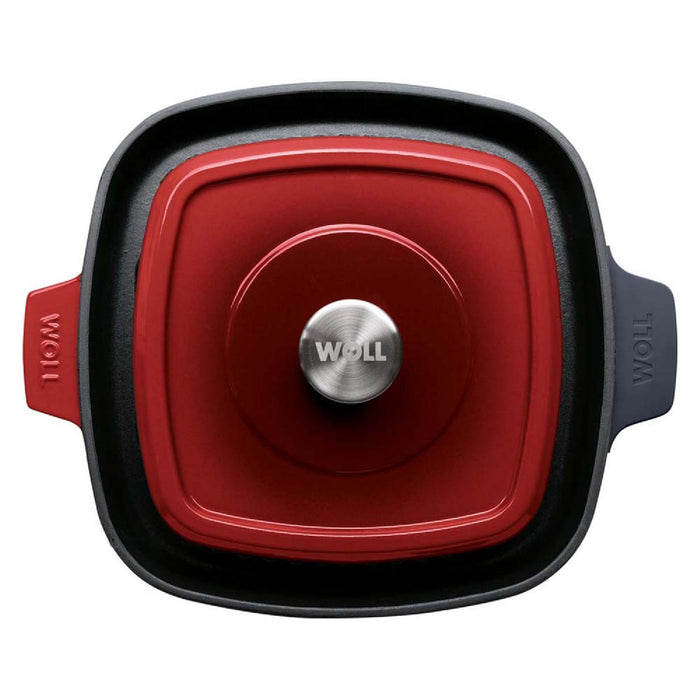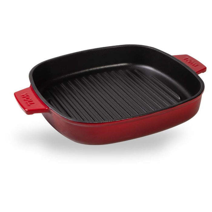 Woll, Iron, Steakpfanne mit Rillen, Chili Red 28 x 28 cm, 4.5 cm hoch Inkl. Steakpresse und Silikongriffe