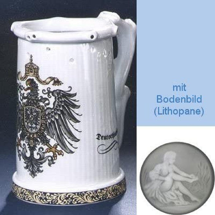 Zimmermann Bierseidel Bier-Krug Vexierkrug - Lochkrug mit Bodenbild 0,5l Deutschland-Adler